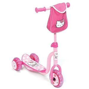 Dès 15 mois : Le tricycle Hello Kitty : il existe avec ou sans canne de direction pour permettre aux parents de contrôler ou non le vélo de leur enfant. Des accessoires peuvent être ajoutés ou sont fournis avec le tricycle en fonction des modèles : une canopy pour protéger l'enfant, un panier, un klaxon ou encore une ceinture de sécurité.